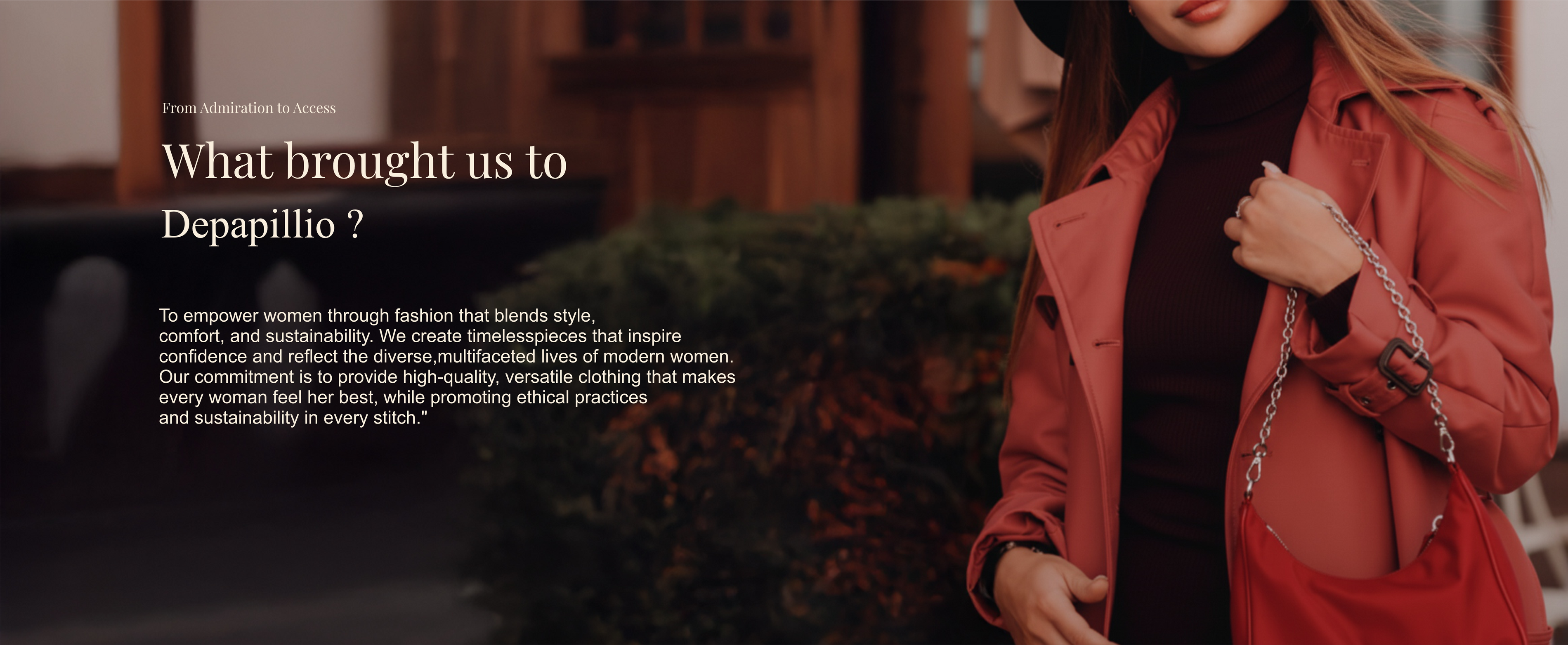 "To empower women through fashion that blends style, comfort, and sustainability. We create timelesspieces that inspire confidence and reflect the diverse,multifaceted lives of modern women. Our commitment is to provide high-quality, versatile clothing that makes every woman feel her best, while promoting ethical practices and sustainability in every stitch."
